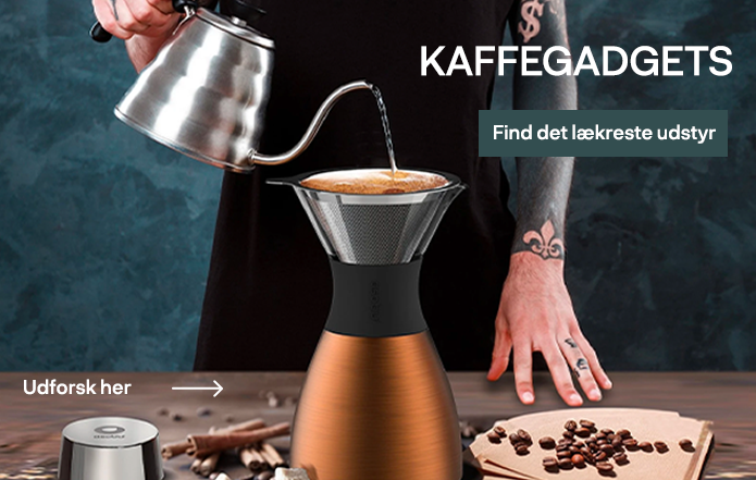 Et must-have for alle kaffeelskere er selvfølgelig en kaffekværn, så du kan nyde kaffe brygget på friskmalede bønner, uanset om du brygger din kaffe i en stempelkande eller laver klassisk filterkaffe. De hele bønner holder nemlig bedre på aromaer og smagsstoffer, så du får en en bedre smagsoplevelse. Hvis du hellere vil holde det lidt low-tech, kan du finde en “gammeldaws” kaffemølle - for eksempel fra japanske Hario, der specialiserer sig i filterbrygning.