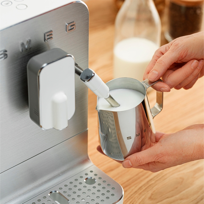 Denne Smeg model er udstyret med en mælkeskummer/steamer, der gør det muligt at få det perfekte mælkeskum til dine favorit drikke. Mælkeskumsfunktionen er ideel til cappuccino, latte, flat white m.m. Mælkeskummeren er simpel at anvende, og kan bruges af kaffeentusiaster ligeså vel som nybegyndere. Vælg blot mellem americano, ristretto eller espresso, og tilsæt mælkeskummen.