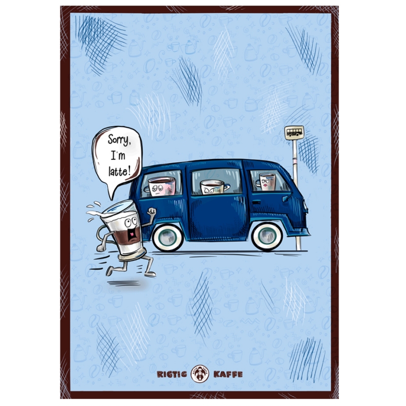 Rigtig Kaffe Sorry I'm Latte plakat vil med sit chamerende statement og smukke blå farve pryde på...