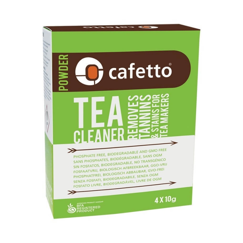 Pakken indeholder 4x10g, hvilket gør det let at dosere den rette mængde. Cafetto Te Rens kan også bruges i te kander, te gryder, krus og kopper, hvis de ser triste ud og har fået tanniner fra te.