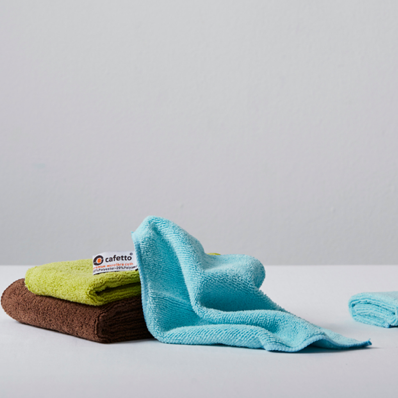 Cafetto barista kludesæt indeholder 4 mikrofiberklude af høj kvalitet. Kludene er designet til at rengøre din espressomaskine og andre overflader.