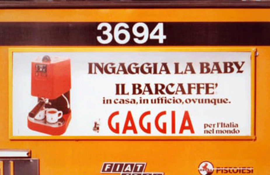 Gaggia installerer sine maskiner i kaffebarer rundt omkring i Milano ledsaget af enorme skilte i vinduerne, hvor der står; "Caffé crema di caffe naturale" (kaffefløde fra naturlig kaffe). Og espressodillen begynder for alvor.