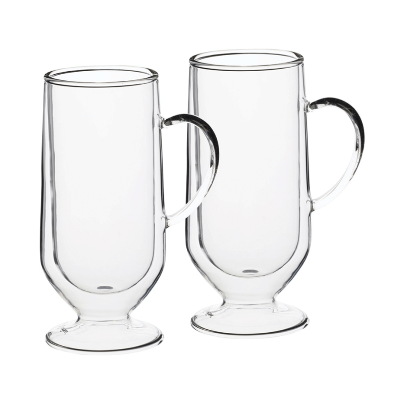 Elegante dobbeltvæggede Irish Coffee glas fra La Cafetiére, der serverer en smuk irish coffee og holder den varm mens den nydes. Dette er smukke og karakteristiske glas, som du med fordel kan anvende, når du har gæster eller til andre særlige lejligheder.