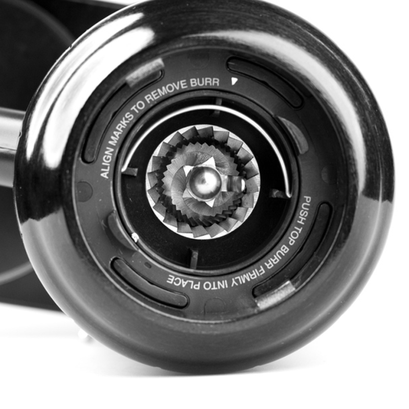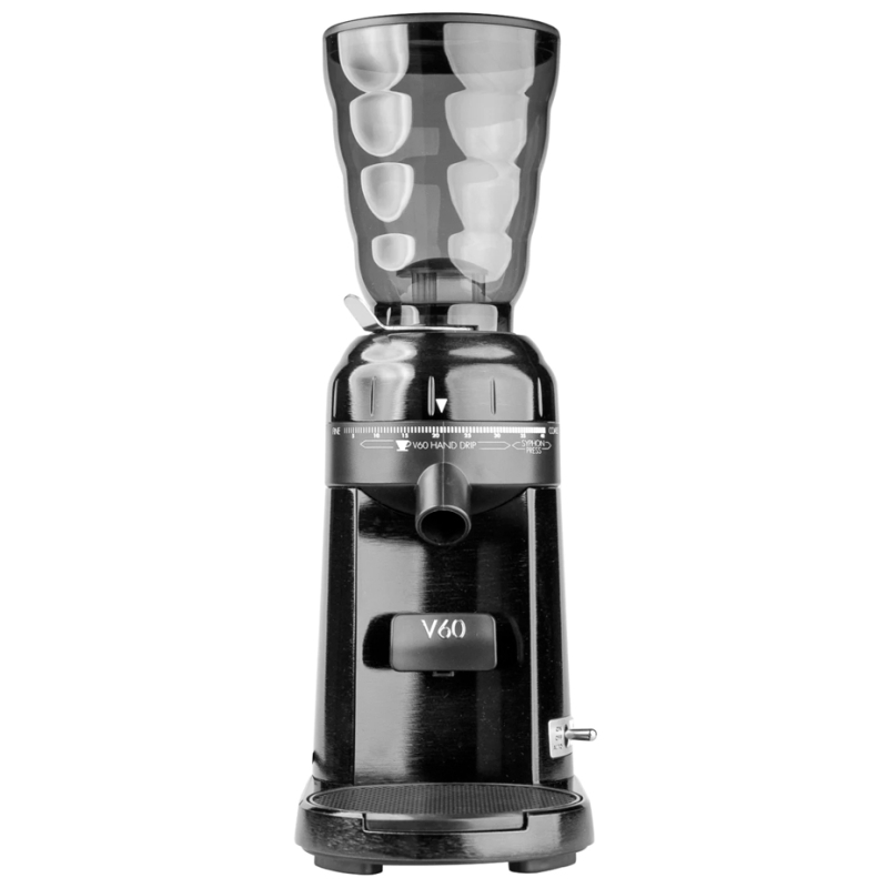 Denne elektriske kaffekværn er udstyret med koniske kværnblade i rustfrit stål og tilbyder muligheden for at kunne male direkte ned i Hario V60 drippers.
