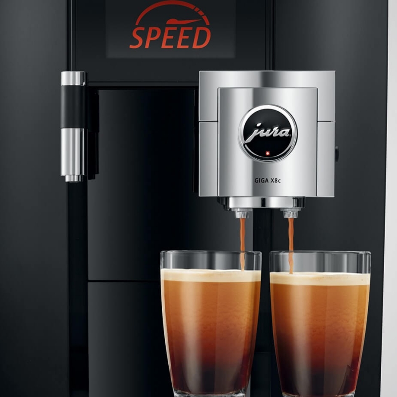Jura Giga X8c (EB) Alu Black er en fuldautomatisk espressomaskine til erhvervsbrug - en brugervenlig og utroligt lækker maskine med 4,3” touchdisplay og styring via Bluetooth.