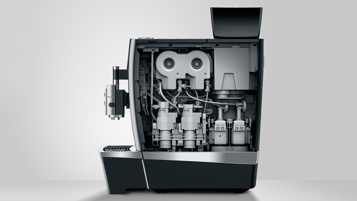 Denne model har direkte vandtilslutning, som betyder, at man ikke skal fylde vand på i løbet af dagen. Den direkte vandtilslutning kræver, at der er installeret et blødgøringsanlæg, eller at der tilkøbes et Jura XL Prof. filter og kit.