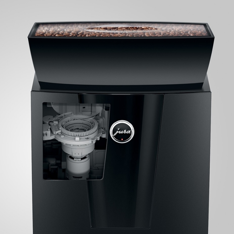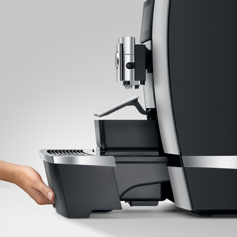 Denne model har direkte vandtilslutning, som betyder, at man ikke skal fylde vand på i løbet af dagen. Den direkte vandtilslutning kræver, at der er installeret et blødgøringsanlæg, eller at der tilkøbes et Jura XL Prof. filter og kit.