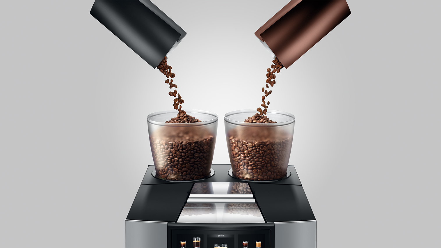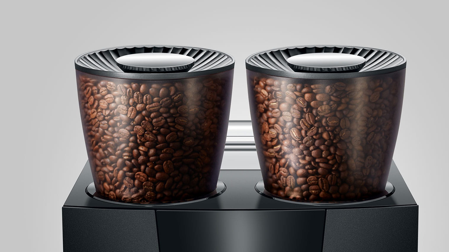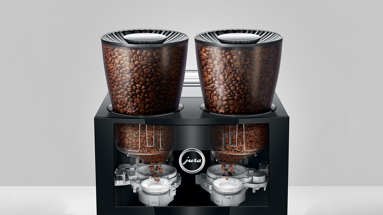 Maskinen er udstyret med to elektronisk justerbare keramiske kværne, to elegant designede bønnebeholdere, to pumper samt to termoblokke. Du får derfor en maskine som tilbereder dine kaffespecialiteter i ægte barista kvalitet, og hvor du har rig mulighed for at skifte mellem kaffeblends alt efter behov. Juras “Automatic Grinder Adjustment” (A.G.A) sørger for at kværnene leverer suverænt præcise resultater i hele levetiden.