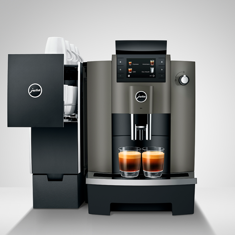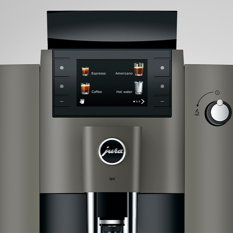 Jura W4 (EA) Dark Inox er en erhvervsmaskine, som ved blot et tryk på en knap brygger en fremragende kop kaffe, lungo, espresso doppio, americano og espresso.