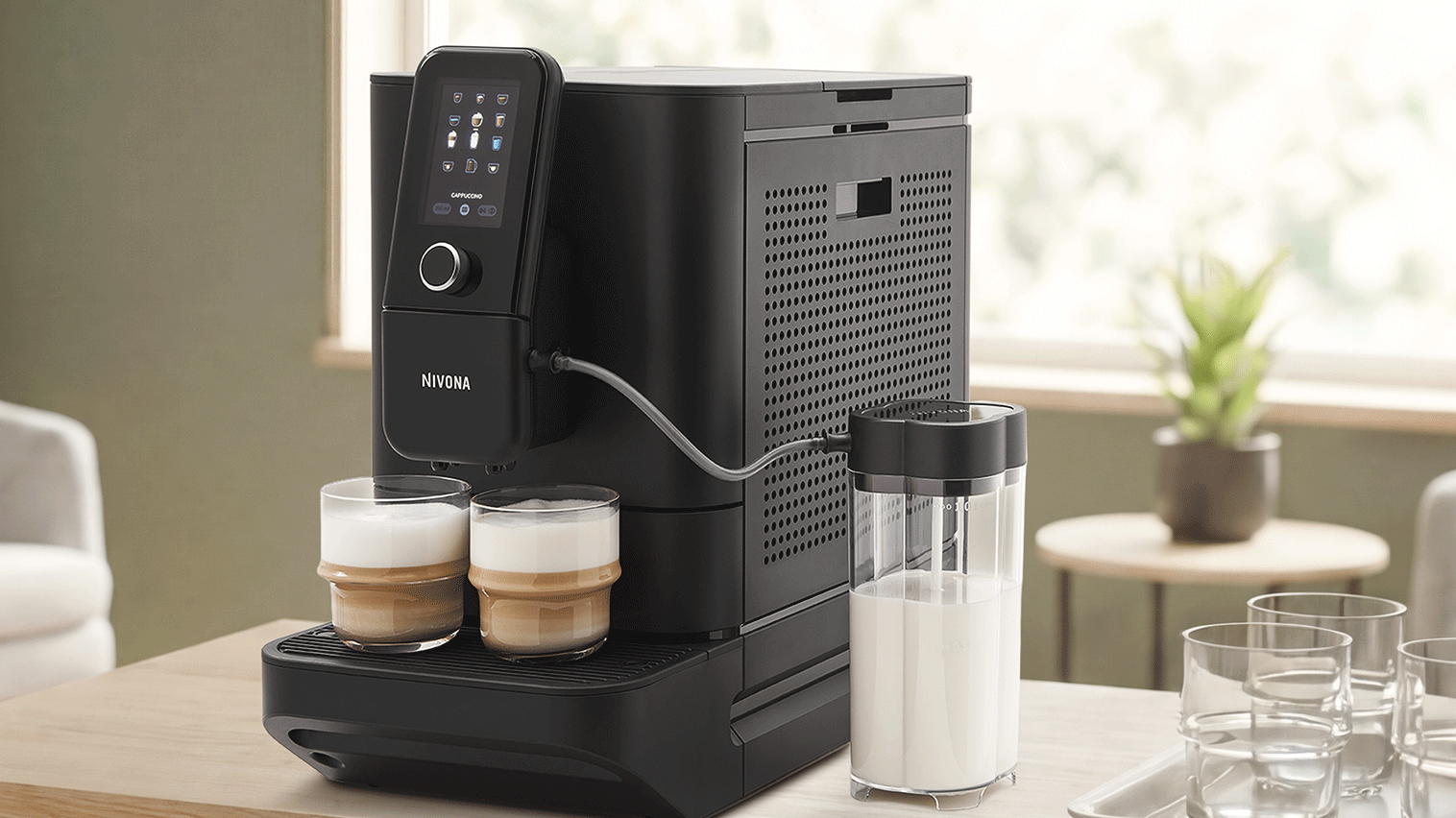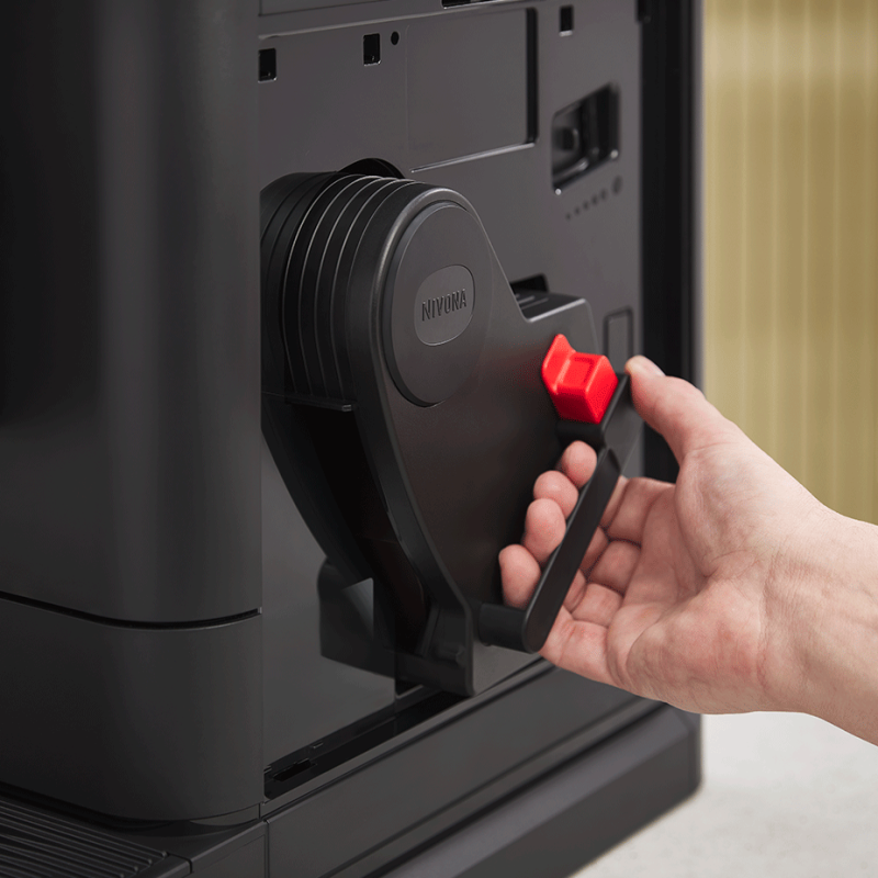 Som noget helt specielt for Nivonas espressomaskiner, kan du på Latte Macchiato’en indstille forholdet mellem ikke blot mælk og kaffe, men mælk, mælkeskum og kaffe! Du har dermed mulighed for at lave en helt perfekt Latte Macchiato med 1/3 kaffe, 1/3 mælk og 1/3 mælkeskum.