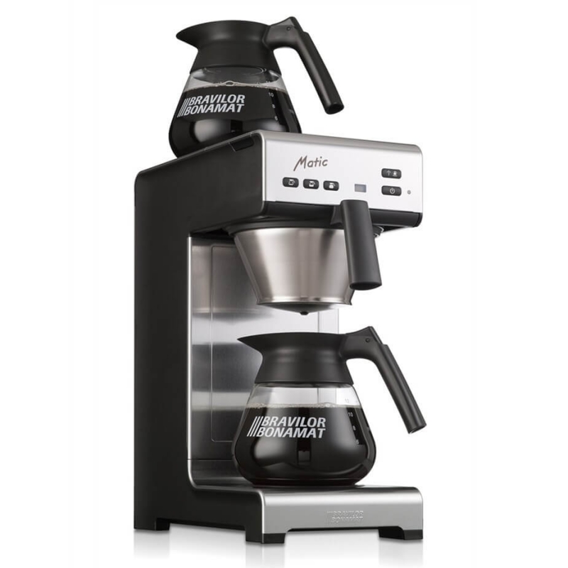 Bonamat Matic er en pålidelig og brugervenlig filterkaffemaskine med fast vandtilslutning, som på blot 6 minutter brygger 1,7 liter kaffe (svarende til 12-14 kopper kaffe).