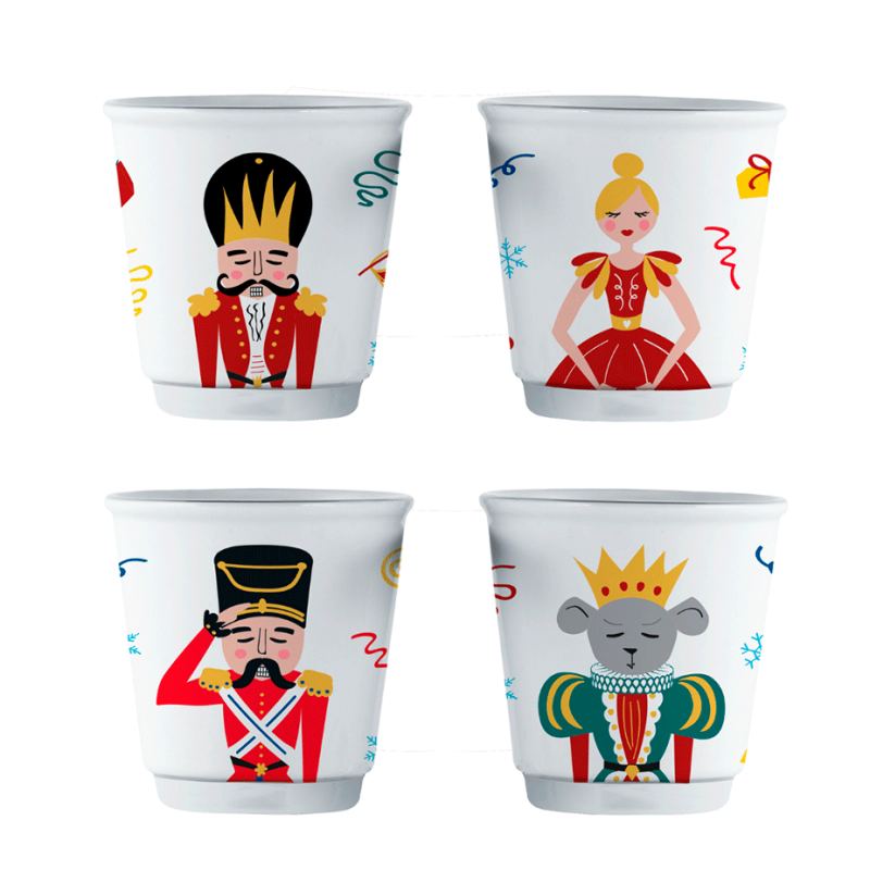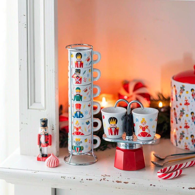 Bialetti espressokopper med motiver fra Nøddeknækkeren er smukke og elegante kopper perfekte til servering af din friskbryggede espresso.