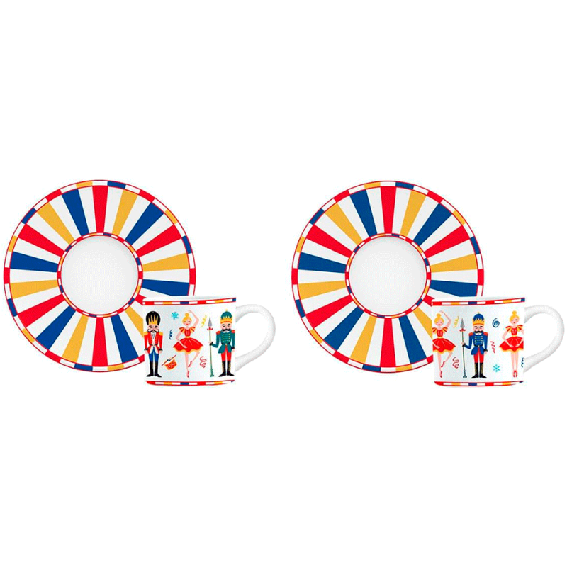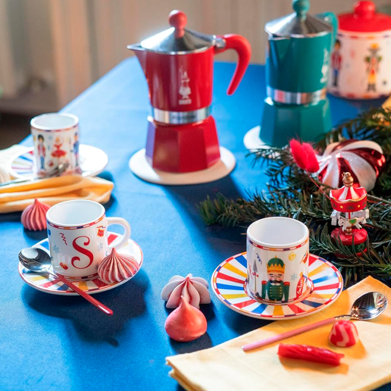 Dette sæt af 2 espressokopper med underkop fra Bialetti er fremstillet af stærk porcelæn, og har smukke motiver fra Nøddeknækkeren. De er perfekte til servering af din friskbryggede espresso.