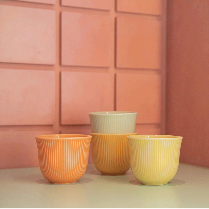 Loveramics espressokoppernes farver er inspireret af Hong Kongs Rainbow Housing Estate med sine smukke, dæmpede pasteller i 11 varianter, der gør hver kop til et lille kunstværk. Koppen har en let rillet overflade, der skaber et smukt design.