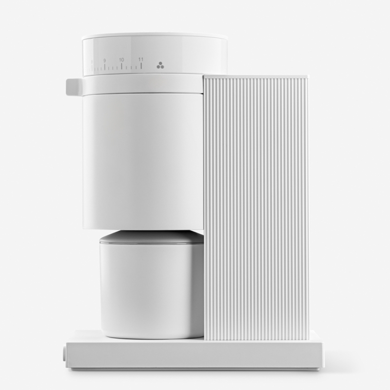 Opus er fremstillet i Fellows kendte, slanke og unikke design, som med sine rene linjer og minimalistiske udtryk passer ind i ethvert køkken eller kaffebar. Kværnen er smuk mat hvid.