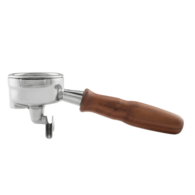 La Marzocco bottomless portafilter er et bundløst portafilter med håndtag i valnøddetræ, som både gør kaffebrygningen fascinerende og interessant, samtidig med det også fungerer som et uundværligt læringsredskab.