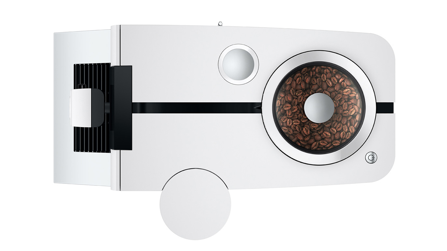 Bønnebeholderen har plads til 125 gram hele bønner. Når Jura ENA 8 skal brygge, kværnes lige præcis den mængde bønner der skal bruges til den enkelte kop.