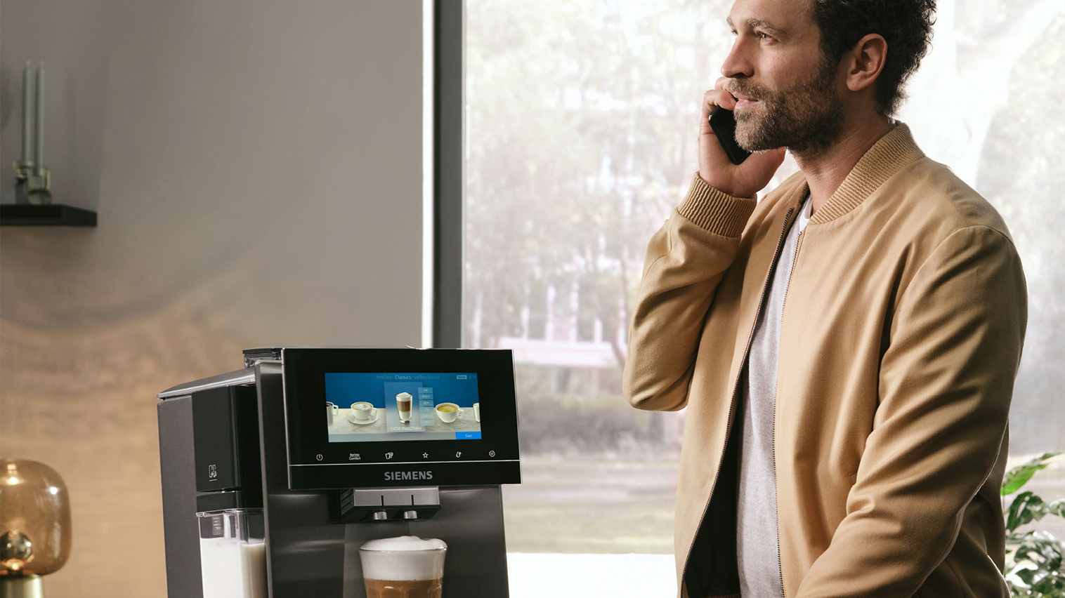 Med Siemens Home Connect kan du betjene din espressomaskine, uanset hvor du er. Du kan tilslutte og styre maskinen via din mobilenhed, tablet eller smartwatch. App’en giver dig yderligere 15 forskellige internationale kaffespecialiteter at vælge i mellem samt mulighed for at lave din egen coffeePlaylist.