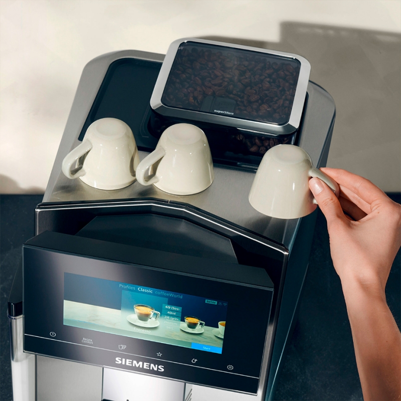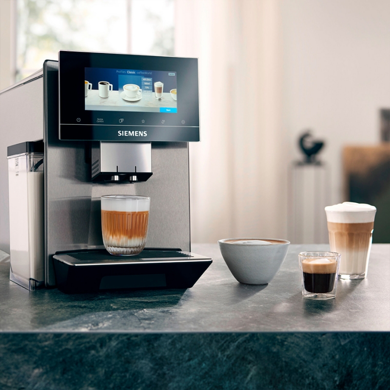 Siemens maskinen overbeviser ikke kun gennem innovation og perfekte resultater, men også med perfekt funktionalitet i harmoni med æstetisk design. Takket være den dynamiske form og sømløse 360° design kan du placere den overalt.