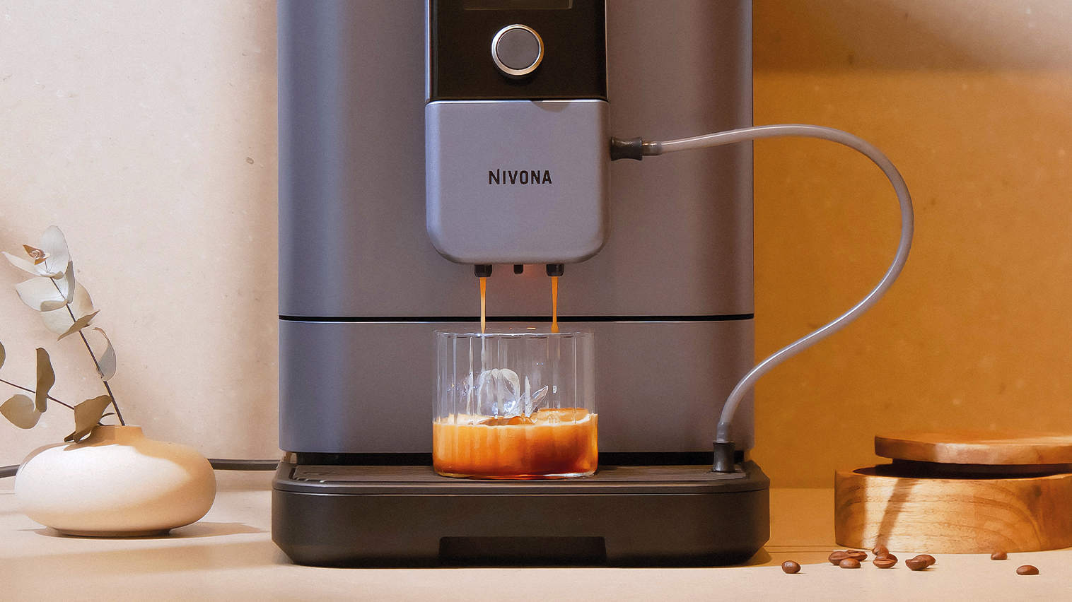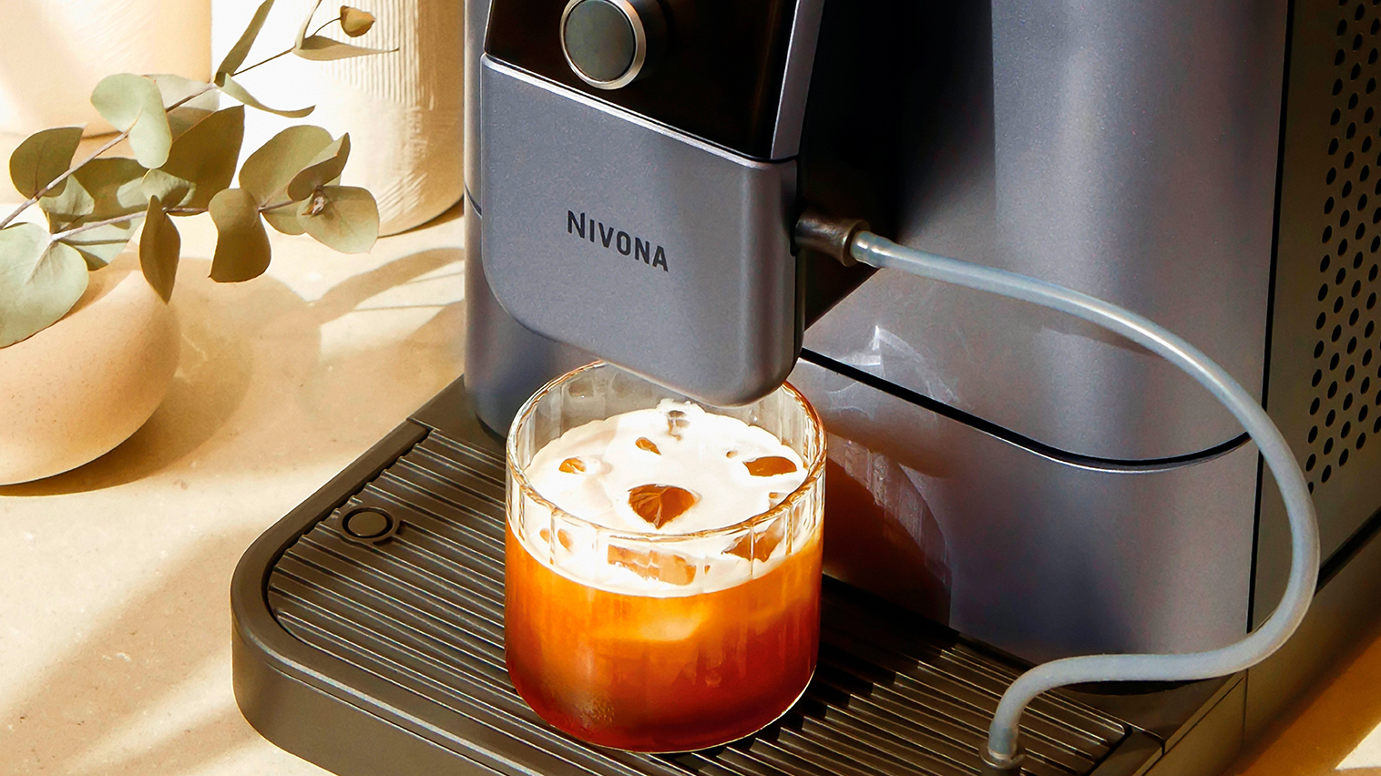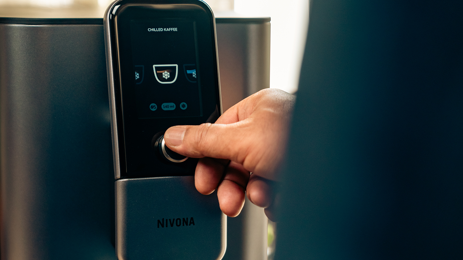 Som en lækker detalje har Nivonas nye maskiner tofarvet kopbelysning. Det betyder, at når der brygges kaffe vil belysningen være ravfarvet, og når der laves mælk vil belysningen være hvid.