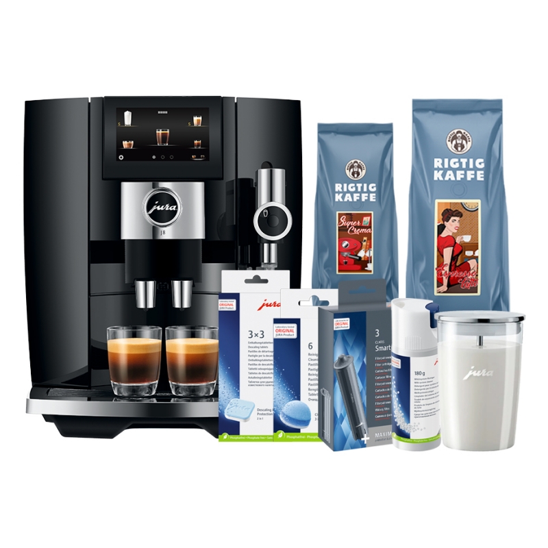 Jura J8 Twin (EA) Diamond Black Espressomaskine Inkl. Mælkebeholder, Pleje & Rigtig Kaffe