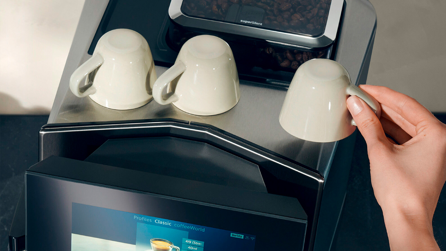 Forvarmede kopper bidrager til fornøjelsen af din kaffedrikkeoplevelse. Takket være den aktive kopvarmer forbliver kaffen varm i længere tid, så du kan nyde den fulde aroma i længere tid. Især espresso udvikler sin perfekte smag i en forvarmet kop.
