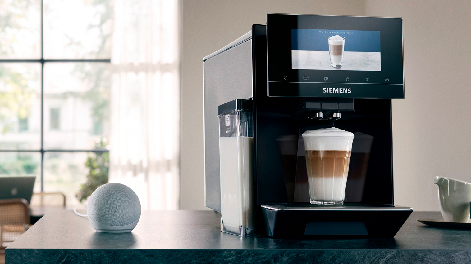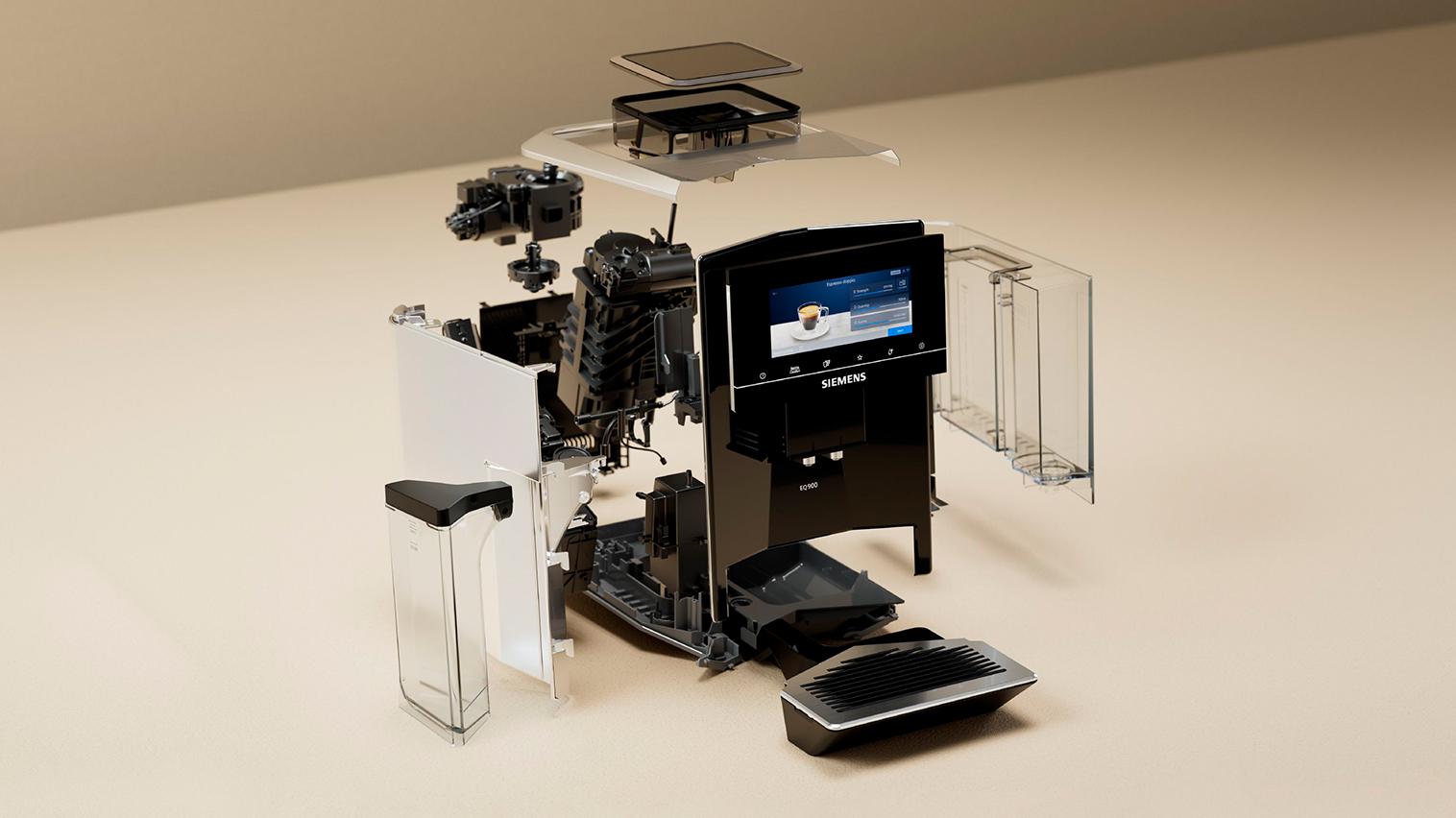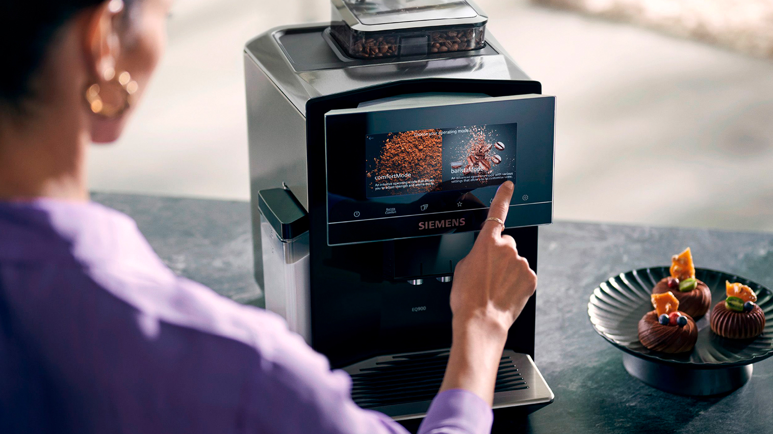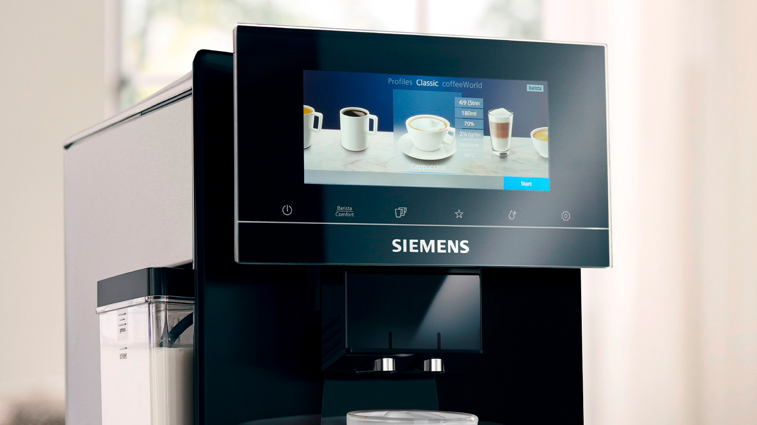 Siemens maskinen overbeviser ikke kun gennem innovation og perfekte resultater, men også med perfekt funktionalitet i harmoni med æstetisk design. Takket være den dynamiske form og sømløse 360° design kan du placere den overalt.