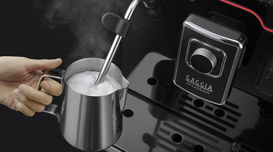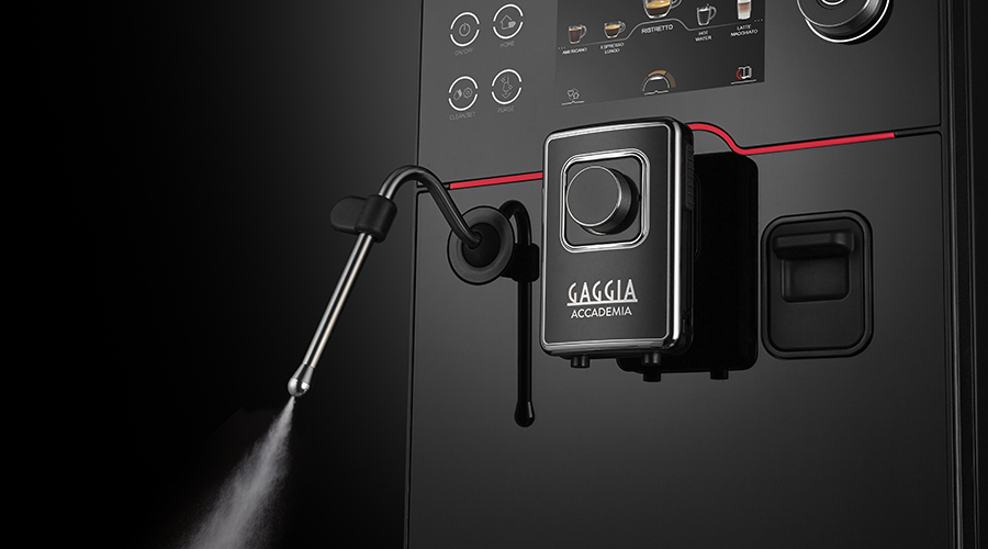 Gaggia Accademia giver dig mulighed for kortvarigt at rense steamarmen ved at skyde damp igennem i få sekunder, så den er klar til at steame din mælk.