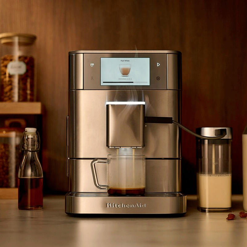 Uanset om du er til espresso, cappuccino, latte macchiato eller americano, kan du nemt finde din favorit på denne maskine! KitchenAid KF8 er designet til at levere en skrædersyet kaffeoplevelse med kun ét tryk. Du skal blot vælge din favoritdrik på skærmen og justere indstillingerne efter dine præferencer. Gem dine præferencer under din brugerprofil, så husker maskinen det næste gang, du skal have en kop kaffe.