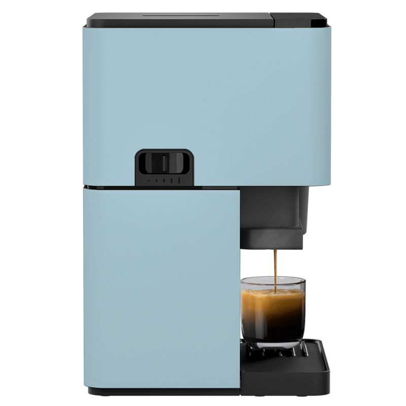 Maskinen er udstyret med den smarte Click Cup beholder, hvor du først placerer beholderen til venstre i maskinen for at kværne kaffe ned i den. Efterfølgende flyttes beholderen over i højre side af maskinen, hvor der strømmer vand igennem det nymalede kaffe, som resulterer i en lækker og cremet kop kaffe eller espresso.