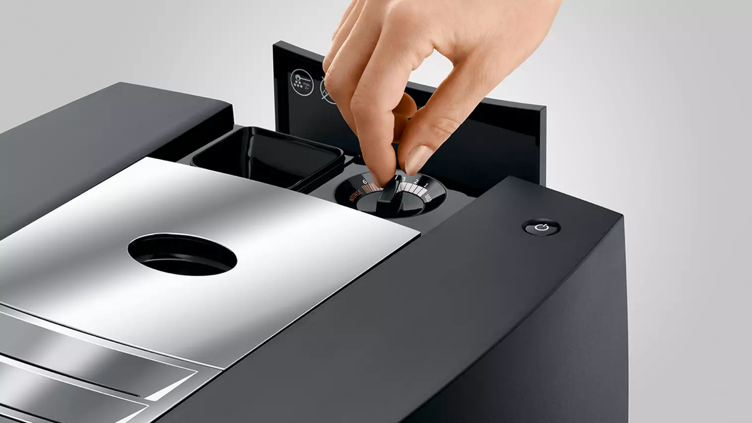 J8 (EA) er udstyret med Juras nyeste skud på stammen af innovative kværne. Kværnen monitorerer aktivt indstillingen af kværnen og optimerer derved aromaen. Det kaldes Aroma Kontrol.