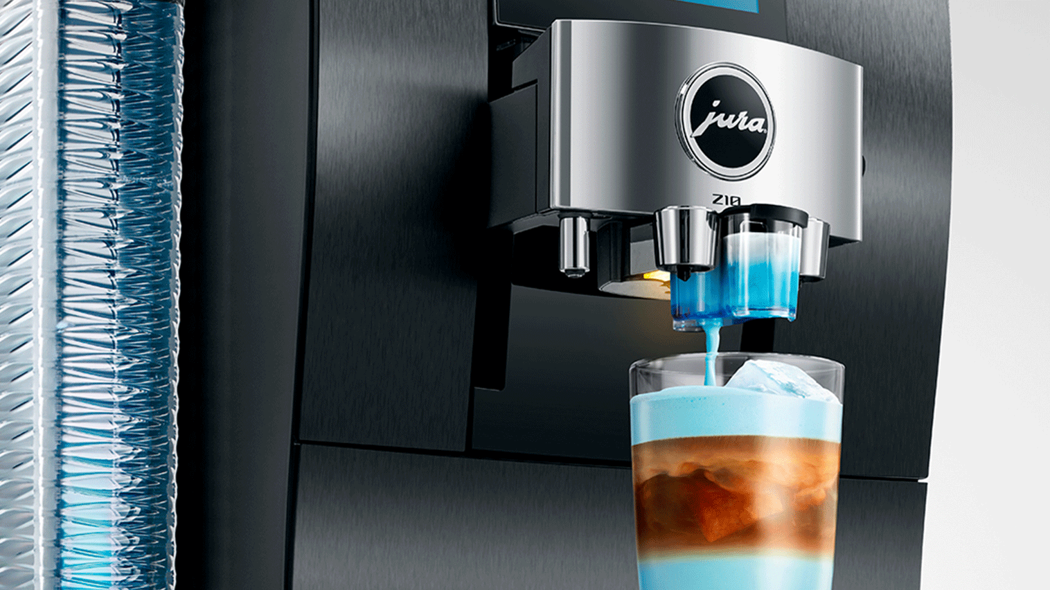 Til sidst kan du vælge at brygge kaffespecialiteter med Sweet Foam, hvor du blot skal sætte Juras medfølgende sirupsbeholder på mælkeudløbet, så mælken løber igennem siruppen og tilføjer lækker sødme til dit mælkeskum. Du kan også vælge at sætte Juras medfølgende beholder til chokoladesirup på maskinens udløb og brygge en Mocaccino eller få mælkeskum med kakaosmag i din kaffe.