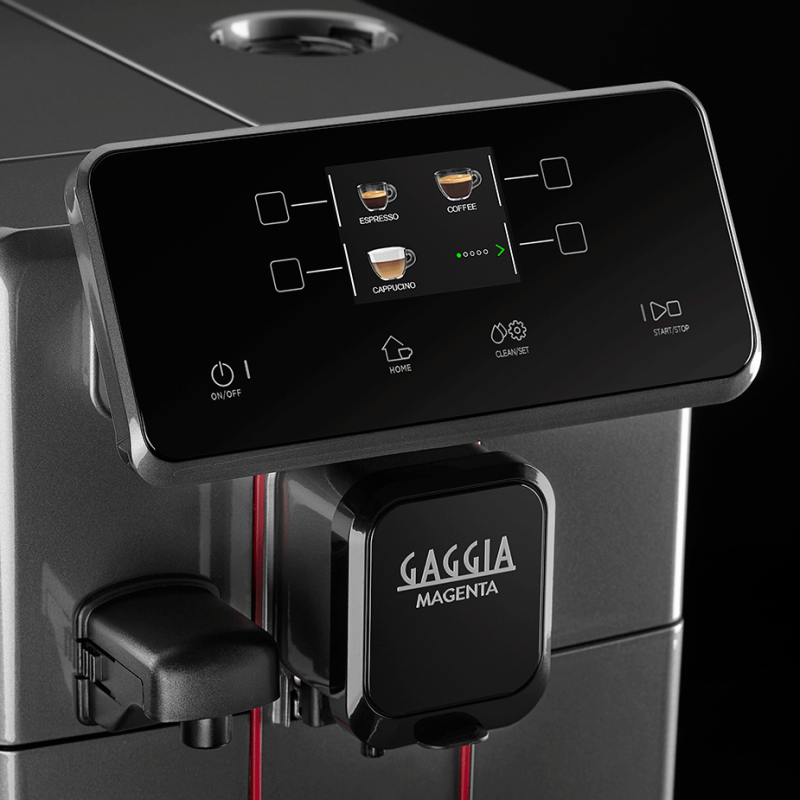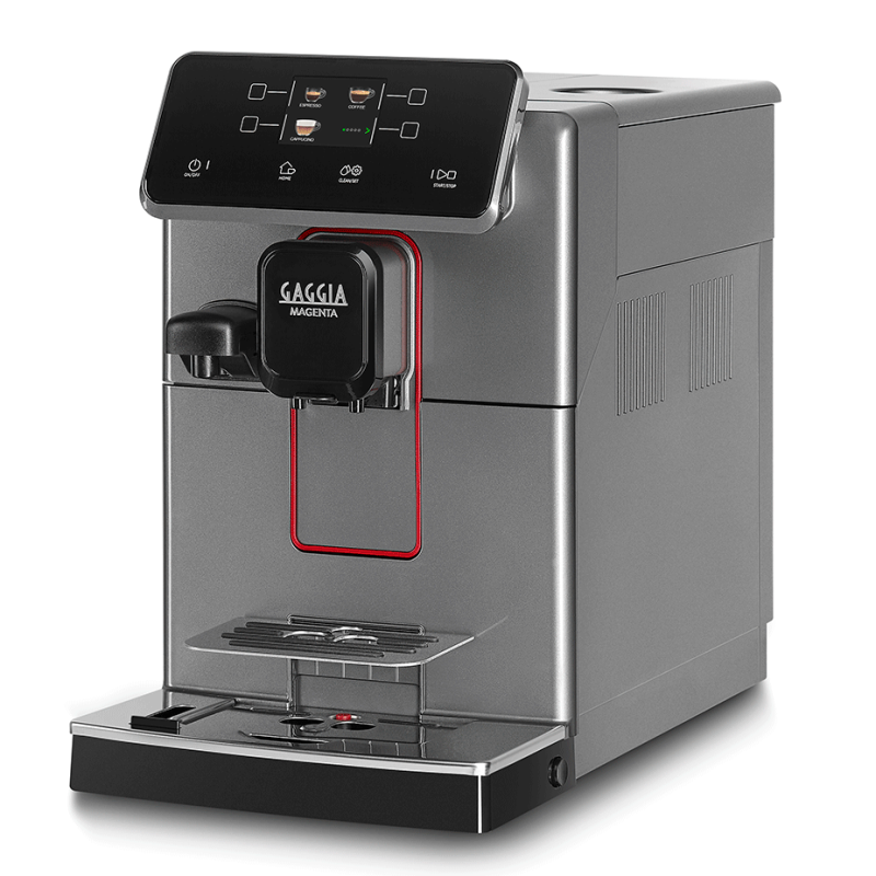 Gaggia Magenta Prestige Glazed Grey er en fuldautomatisk espressomaskine, der ved blot et tryk på en knap brygger en fantastisk kop kaffe.