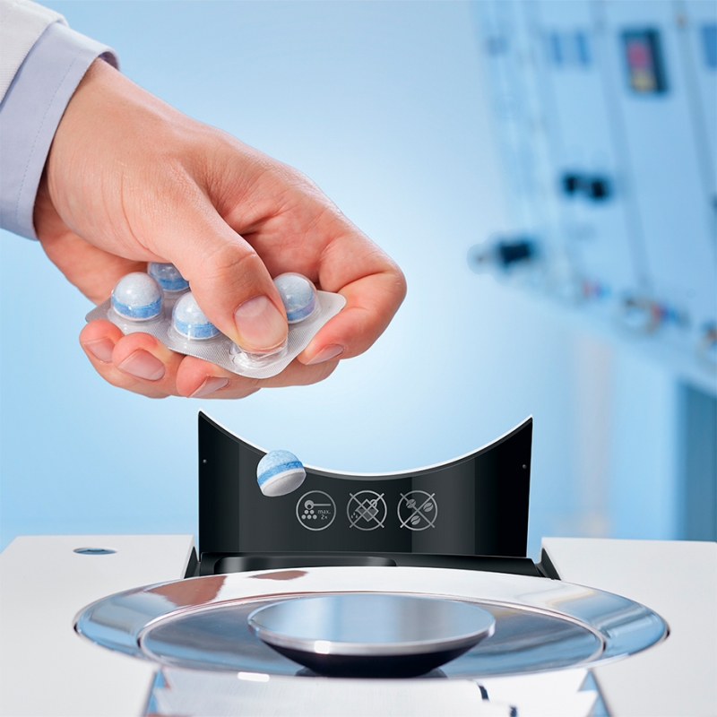 I kombination med det integrerede, elektronisk styrede rengøringsprogram fjerner 3-fase rensetabletterne sikkert og effektivt kaffefedt mellem bryggeenheden og kaffeudløbet. Udover rengøring forsegles rørene, og minimerer effektivt og varigt aflejring af kaffefedt. Alt sker med et tryk på en knap.