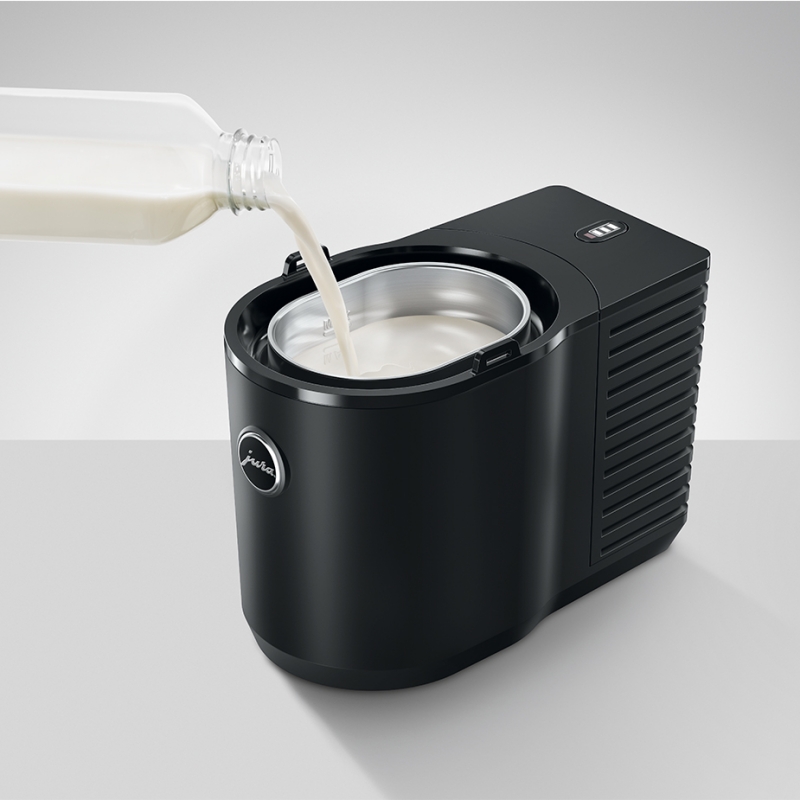 Jura Cool Control er en ny og opdateret udgave af den smarte og praktiske mælkekøler, der passer til alle Juras privat- og erhvervsmaskiner, som kan lave mælk - perfekt til dig, der gerne vil nyde en cappuccino eller latte nemt og bekvemt.