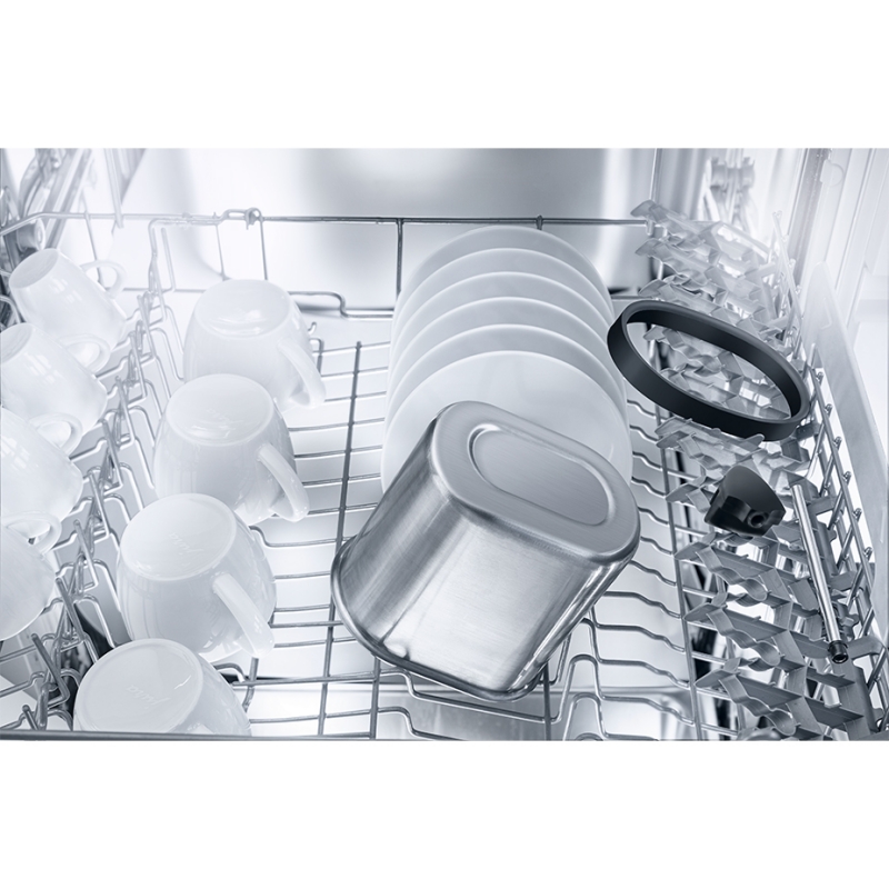 Mælkekøleren har en kapacitet på 1 liter og tilsluttes direkte til stikkontakten, hvorefter den indbyggede køler sørger for at holde mælkens temperatur på 4°C. Den indvendige beholder af rustfrit stål fyldes let, uden at den behøver at blive fjernet fra mælkekøleren - alle dele, der kommer i direkte kontakt med mælken kan vaskes i opvaskemaskinen, så rengøringen er så hurtig og nem, som muligt.