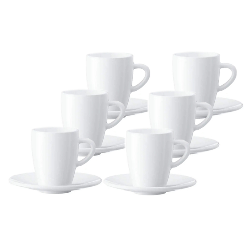 En kasse indeholder 2 espressokopper med tilhørende underkop. Her får du i alt 6 kopper.