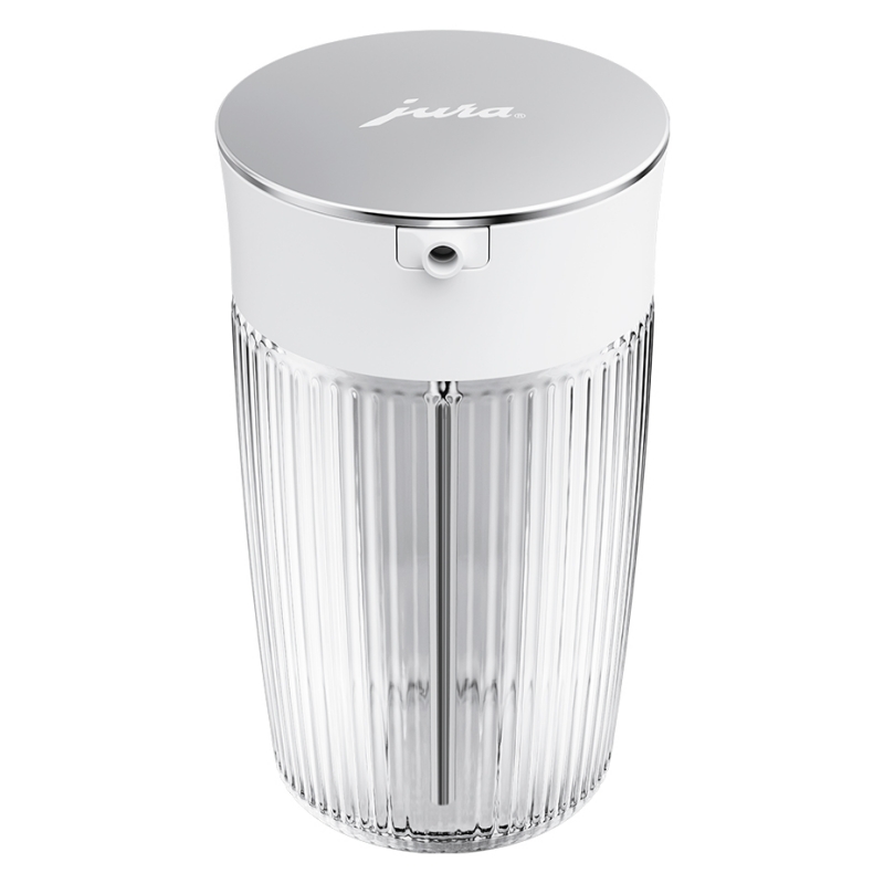 Jura har givet deres glasmælkebeholder et nyt udtryk og lancerer nu Jura glasmælkekaraffel – en både stilfuld og funktionel løsning til opbevaring af mælk.
