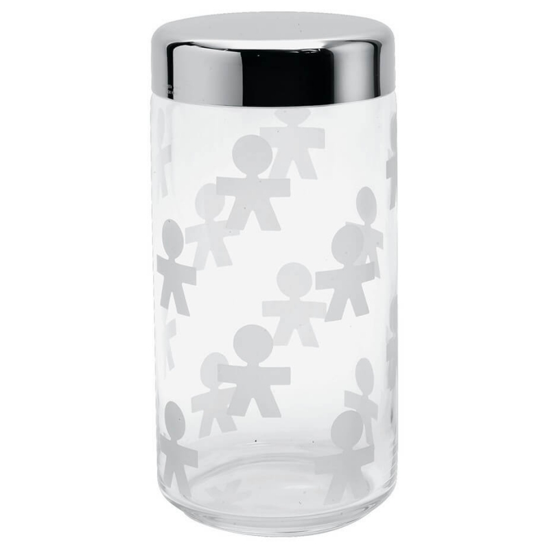 Alessi Girotondo krukken er en elegant og moderne glaskrukke med serigrafi motiv og tætsluttende låg.
