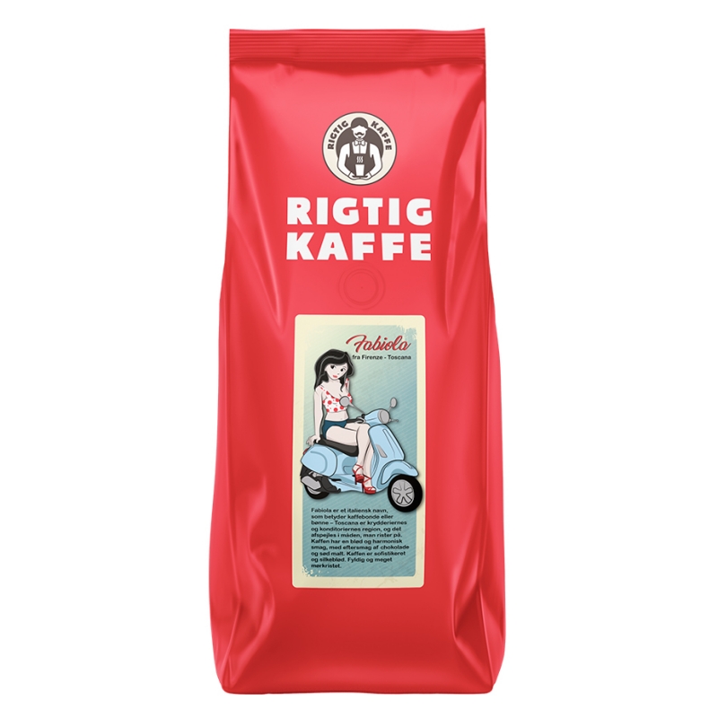 Rigtig Kaffe Fabiola er en utroligt fyldig og harmonisk kaffeblend - en hyldest til den toscanske kaffetradition og ristning. Kaffen består af 75% vasket arabica og 25% robusta fra Colombia, Kenya, Guatemala og Brasilien.