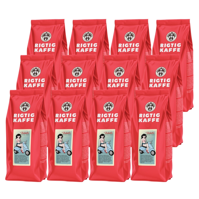 12 x Rigtig Kaffe Fabiola 500g Hele kaffebønner