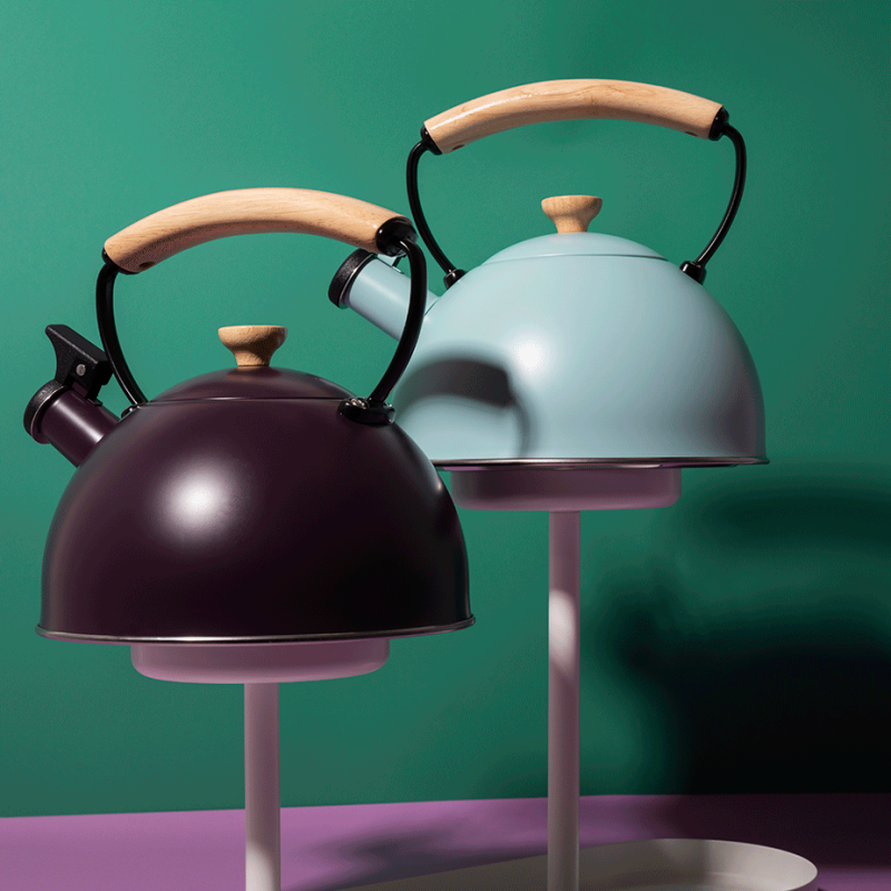 Denne fløjtekedel er ligeledes udstyret med et aftageligt låg, så du nemt og hurtigt kan fylde vand på. Kombinationen af det ergonomiske håndtag af varmebestandigt træ og den praktiske tudhætte, der gør hældningen af det varme vand lettere, er du sikker på en behagelig oplevelse med din fløjtekedel hver gang. Kedlen fløjter, så snart vandet er kogt, hvilket gør den endnu mere charmerende og retro.
