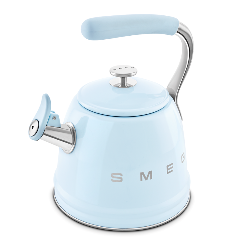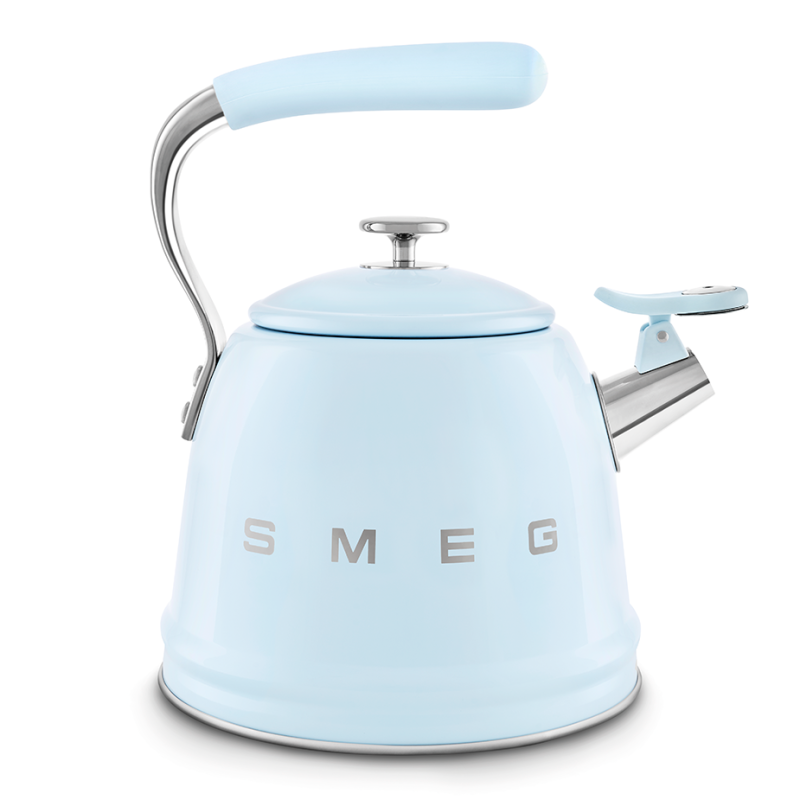 Giv dit køkken et strejf af vintage charme med Smeg WKF01PB fløjtekedlen i pastelblå 50'er-stil. Denne kedel kombinerer æstetik og funktionalitet, hvilket gør den til et ideelt valg for te- og kaffeentusiaster.