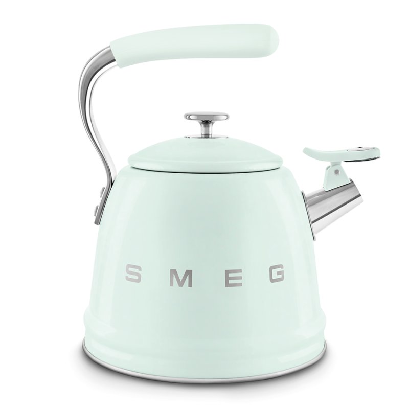 Giv dit køkken et strejf af vintage charme med Smeg WKF01PG fløjtekedlen i pastelgrøn 50'er-stil. Denne kedel kombinerer æstetik og funktionalitet, hvilket gør den til et ideelt valg for te- og kaffeentusiaster.