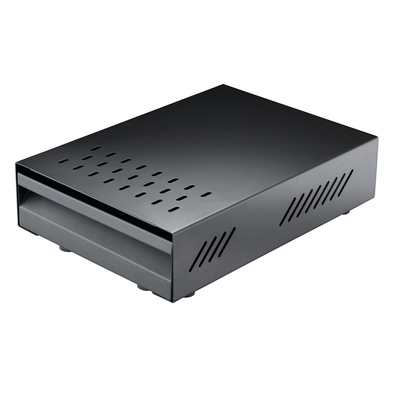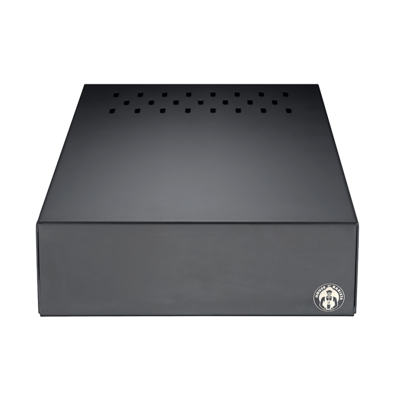 Denne knockbox er fremstillet i metal med sort overfladebehandling og giver den et eksklusivt udtryk.