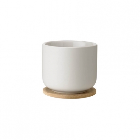 Kruset er udført i sandfarvet stentøj med mat finish og indvendig blank glasering. Der medfølger en praktisk bambus coaster, som desuden kan anvendes som låg. Den sandfarvede udgave af Theo-serien er lanceret i efteråret 2019.