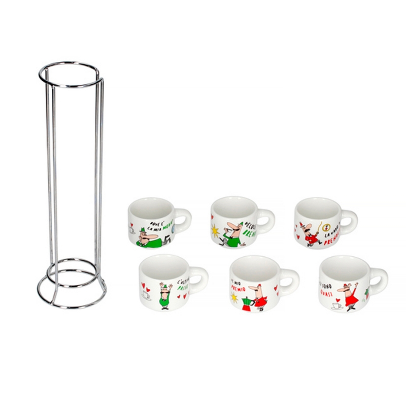 Espressokopperne er et sæt af 6 stk, som er fremstillet med seks skønne motiver. Du får ligeledes en stand til kopperne, så du altid kan have dem på plads og fremme i køkkenet.