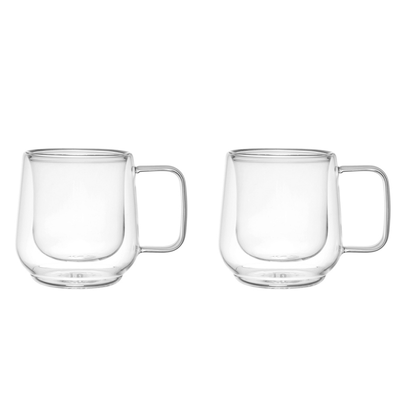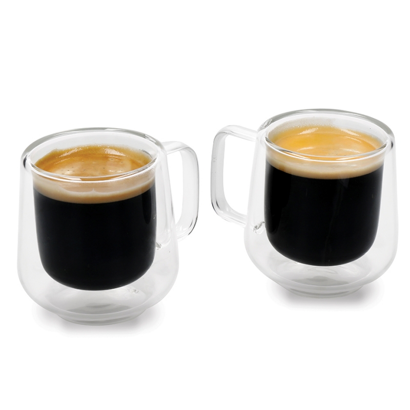 Glassene er dobbeltvægget, således du opnår en termoeffekt og dermed kan holde din kaffe varm i længere tid.
