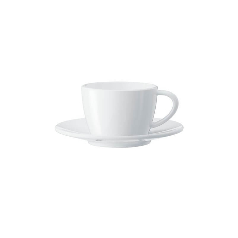 Kopper er helt hvide og har et elegant buttet look, samtidig der er der under bunden på cappuccinokopperne og på underkoppen hvor koppen står trykt Jura logoet med en lille nuance forskel i hvid. En utrolig elegant og eksklusiv cappuccinokop.