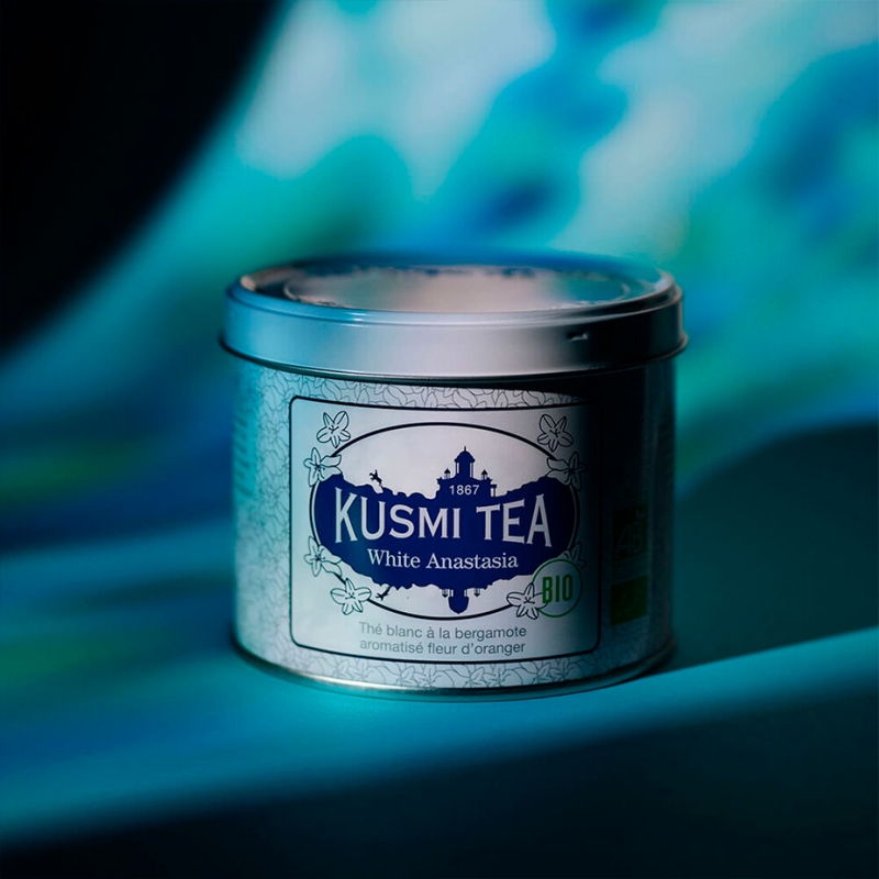 Kusmi Te White Anastasia er en nyfortolkning af den klassiske Anastasia te, her som hvid te.